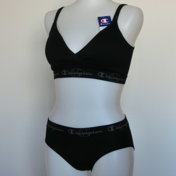 > 【L】 Champion チャンピオン 黒 スポブラセット スポーツブラジャー+ショーツ 0592Ex 吸汗速乾 カシュクール カップ付 ブラック