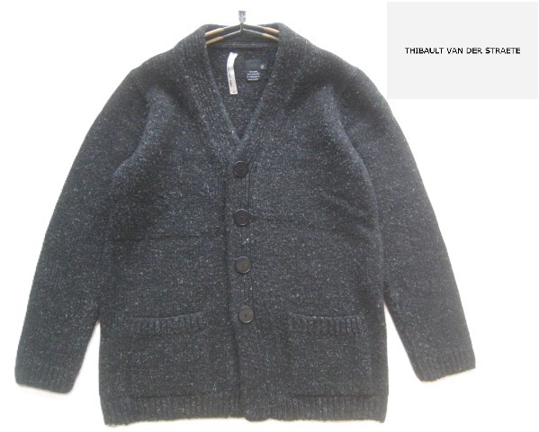 > 美品ペルー製!!ティボーヴァンダルストラット THIBAULT VAN DER STRAETE*厚手ミックス織りウールニットカーディガン XS 実寸S 実寸S 黒