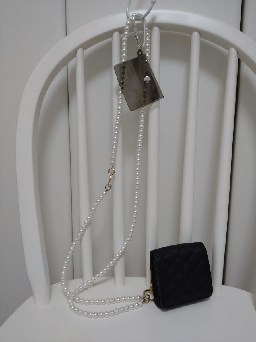- ★DISCOATディスコート★キルトポーチ付きパール携帯ストラップ(ブラック)&★Latticeラティス★クリアポーチカラビナ付き(ブラック)