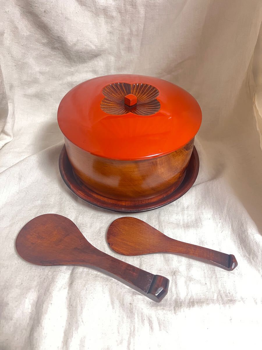 - ◆ 木製漆工芸 飯櫃 木製しゃもじ2個付き◆B-1985