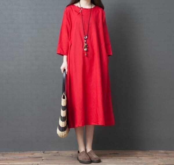 - ナチュラル ゆったり 可愛い 綿麻リネン 大きいサイズ カジュアル チュニックワンピースYWQ466