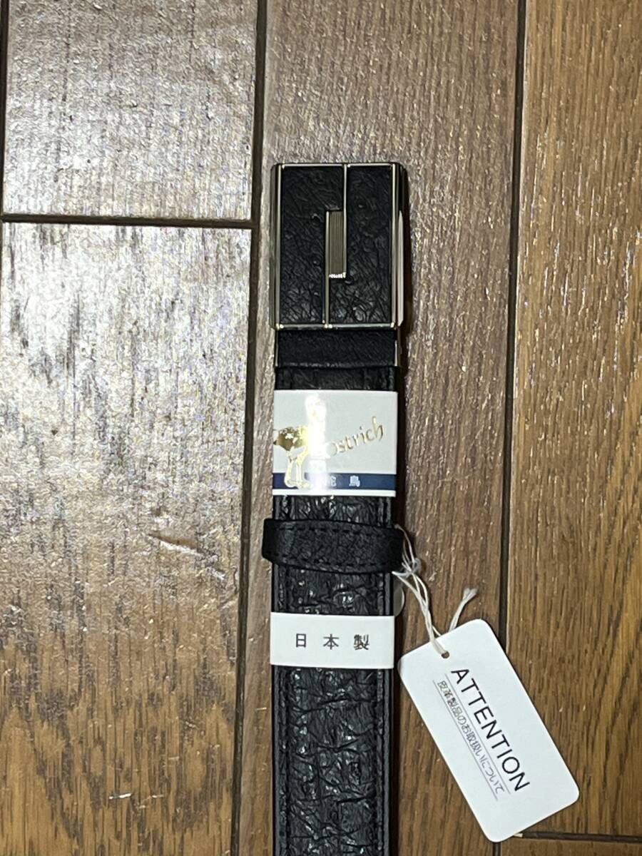 - 【質屋 尾張屋商店 東京】 (4906) ☆未使用☆ オーストリッチ ベルト 日本製 スライドバックル