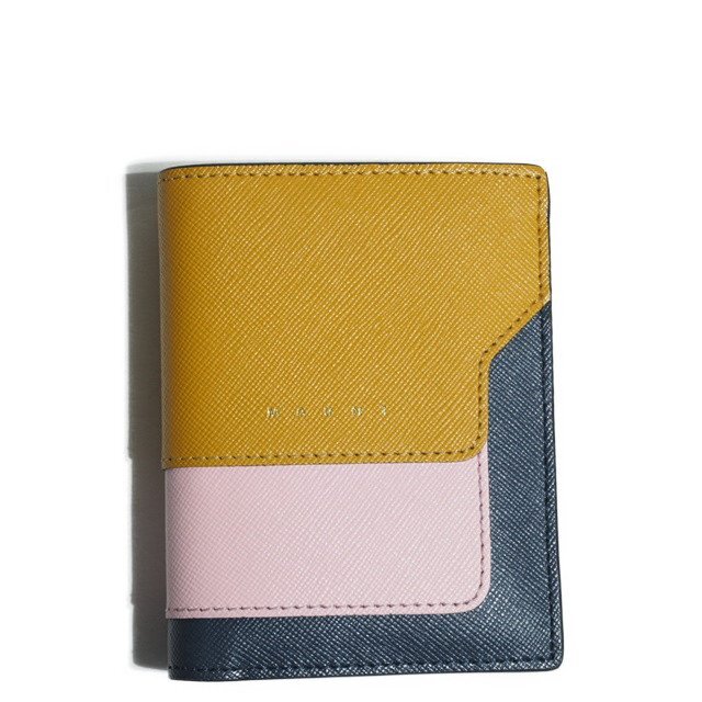 > C2988f18 ▼MARNI マルニ▼ TRUNK バイフォールドウォレット キャメル ピンク ネイビー / PFMOQ14U13 二つ折り 財布 ミニ財布