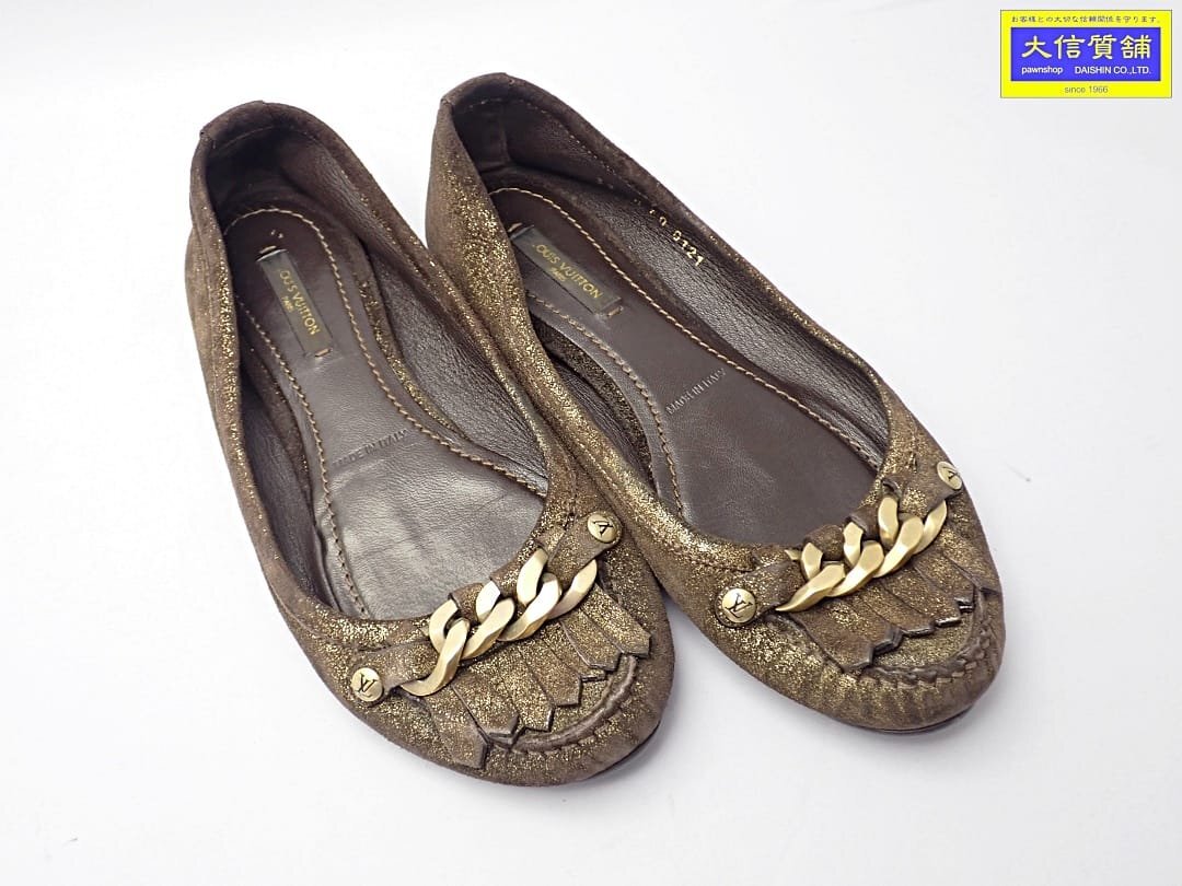 > LOUIS VUITTON ルイ・ヴィトン ローファー フラットシューズ 37 スエード ラメ ダークブラウン 中古B 【送料無料】 A-8696