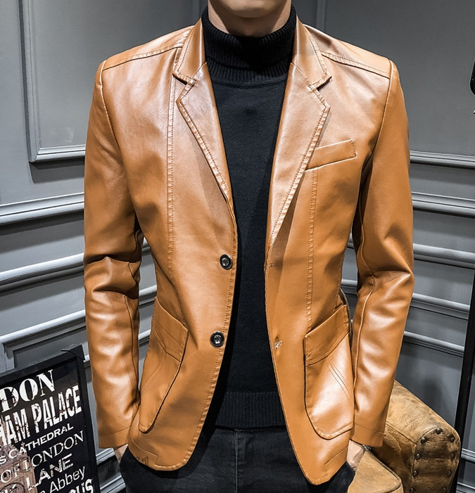 - テーラードジャケット 新品 メンズ ブレザー レザージャケット 革ジャン スリム 紳士 アウター トップス カジュアル ブラウン/XL