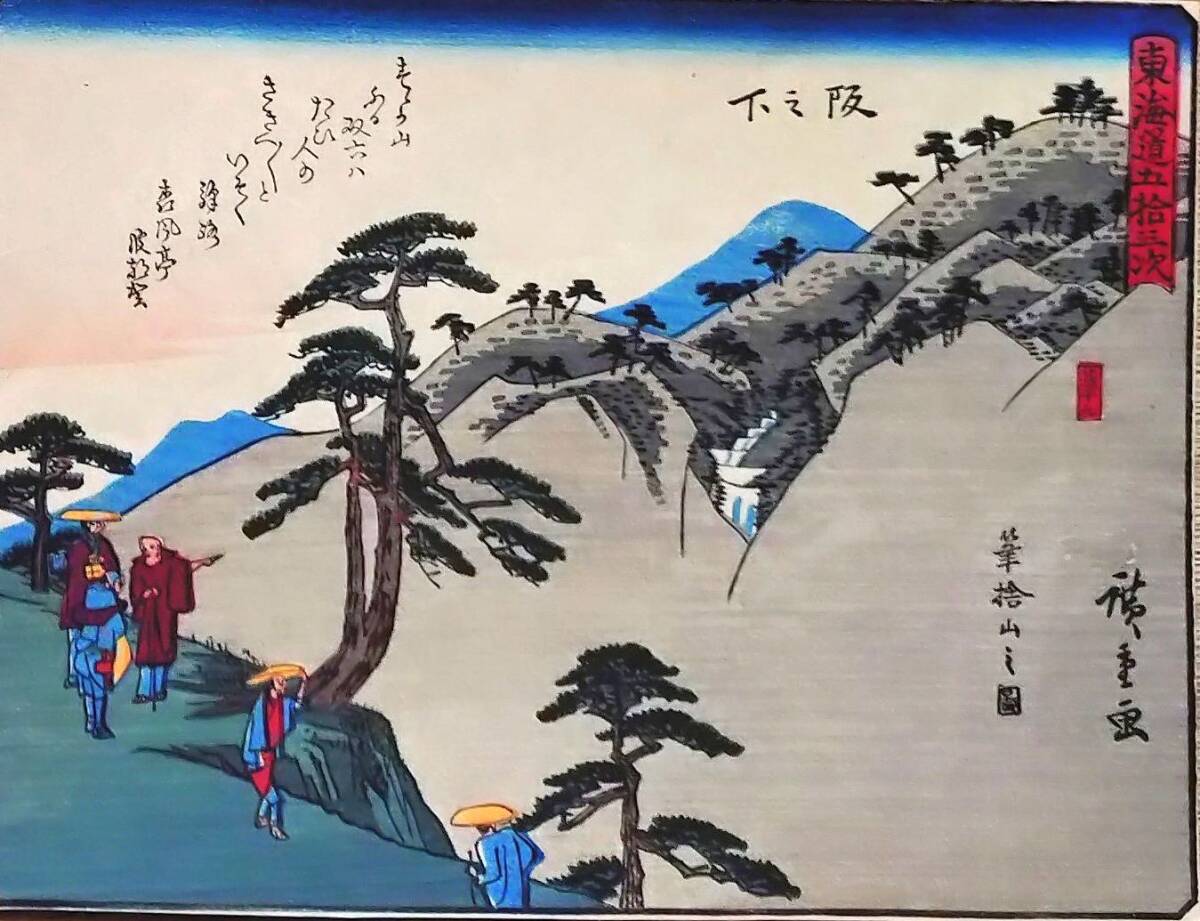 - f24112213〇広重 彩色木版画 東海道五十三次狂歌入 坂の下 大正時代〇和本古書古文書