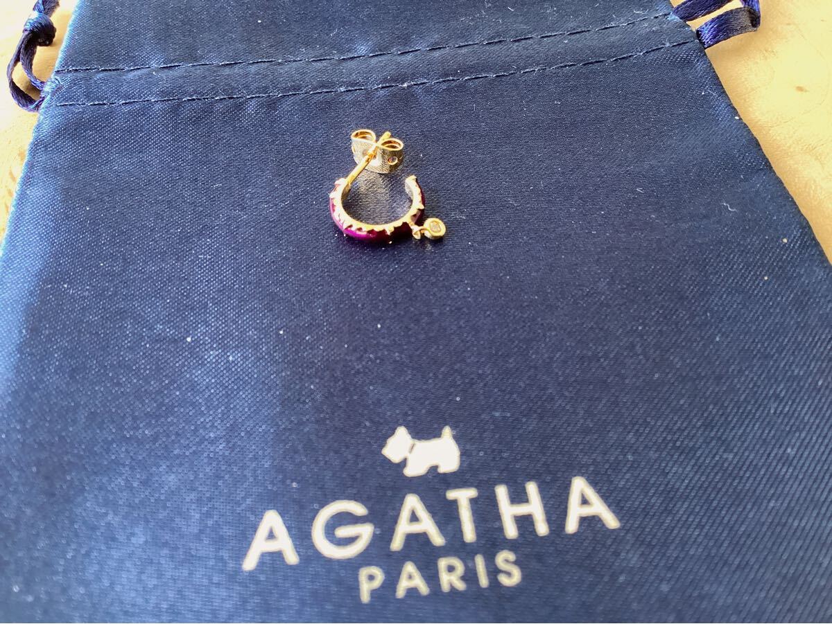 > 【AGATHA】アガタ PLAQUE OR キラキラビジュー 七宝 片耳 フープピアス パープル×ゴールド