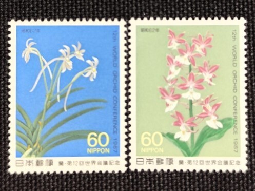 > [24112108]【蘭・第12回世界会議記念】単片2種完 「ニオイエビネ・フウラン」花 蘭 60円×2 1987年発行 美品