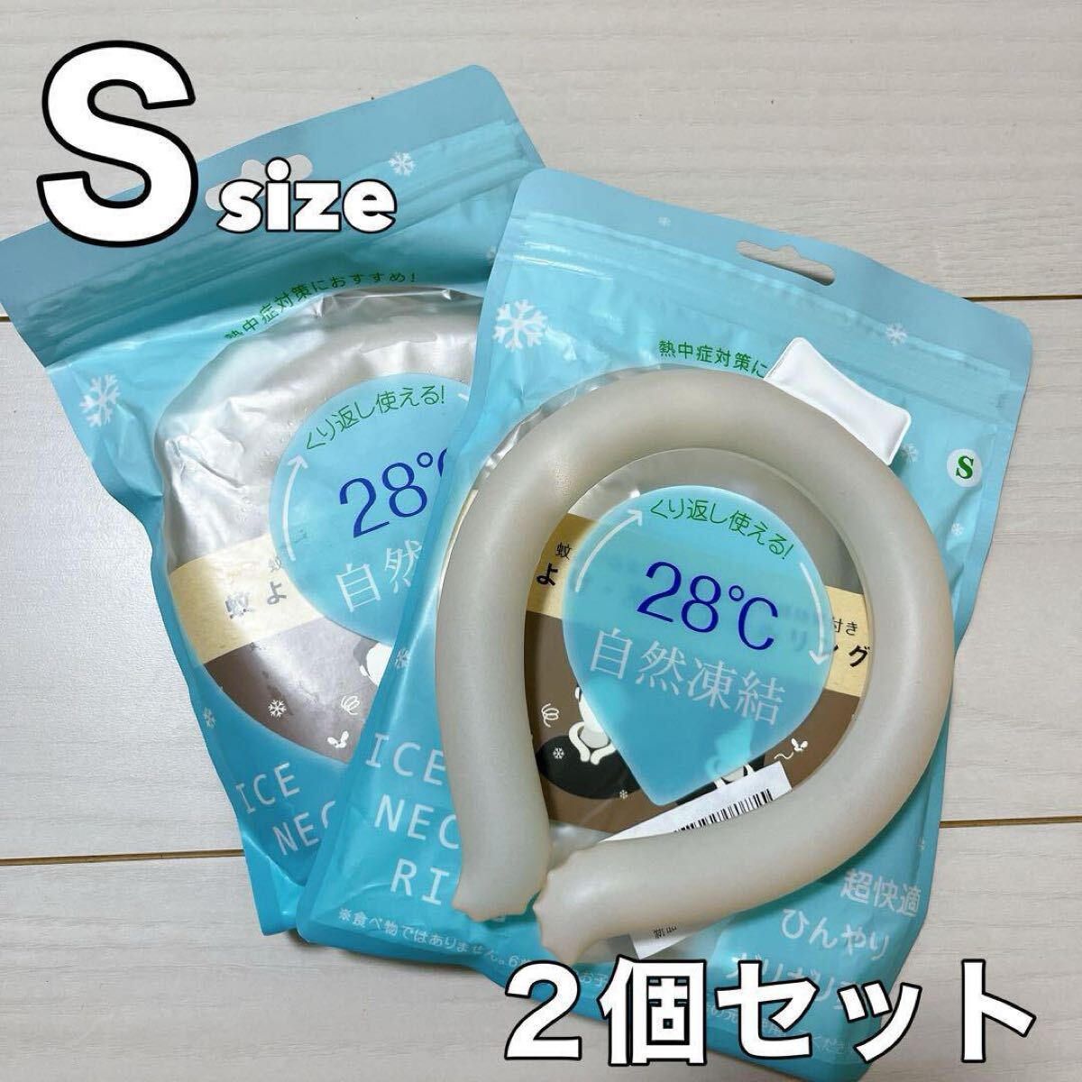 - 蚊よけ クールネックリング2個セット 28℃自然凍結 クールリング S カーキ