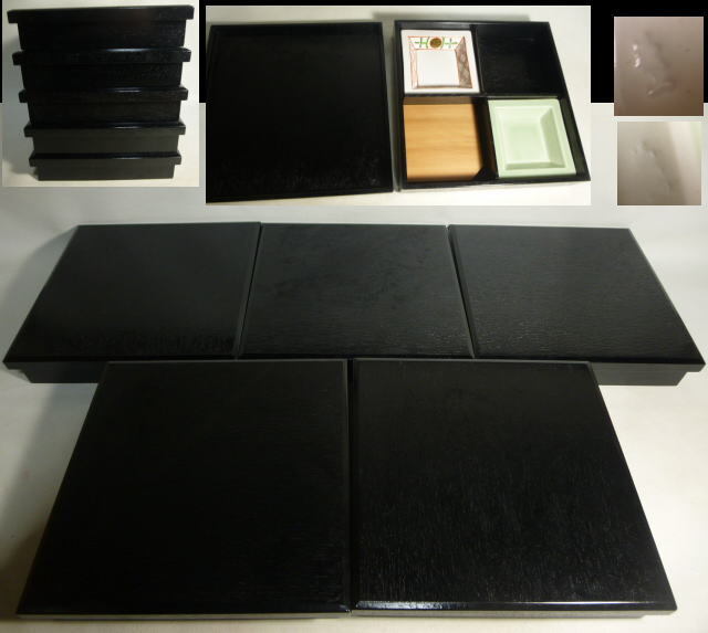 - 松花堂弁当 5客揃え 木製漆器 黒塗 黒漆 茶懐石 漆器 /24112421