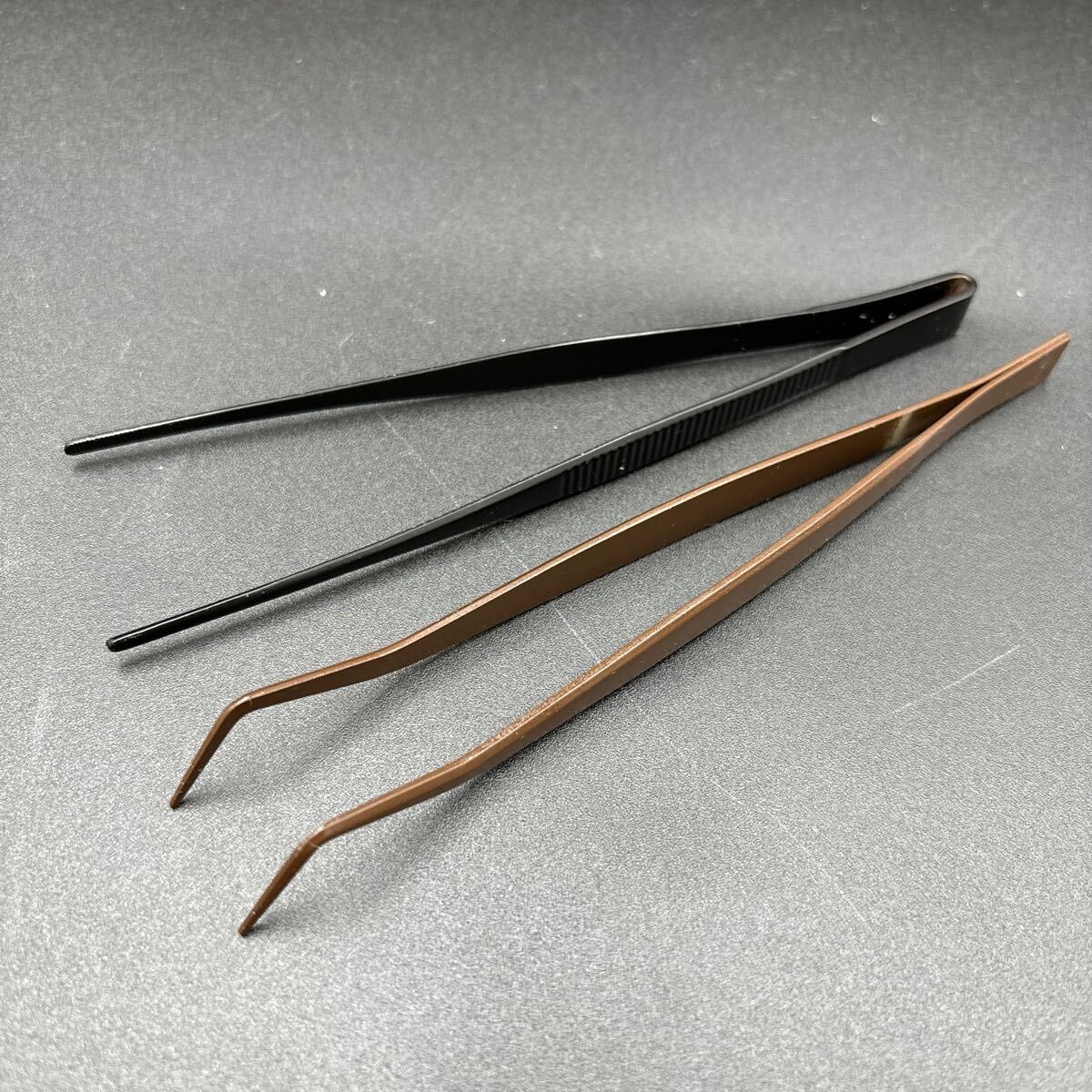 - テフロンコーティングピンセット2本 黒ストレート/茶色先カーブ ピンセット メーカー詳細不明