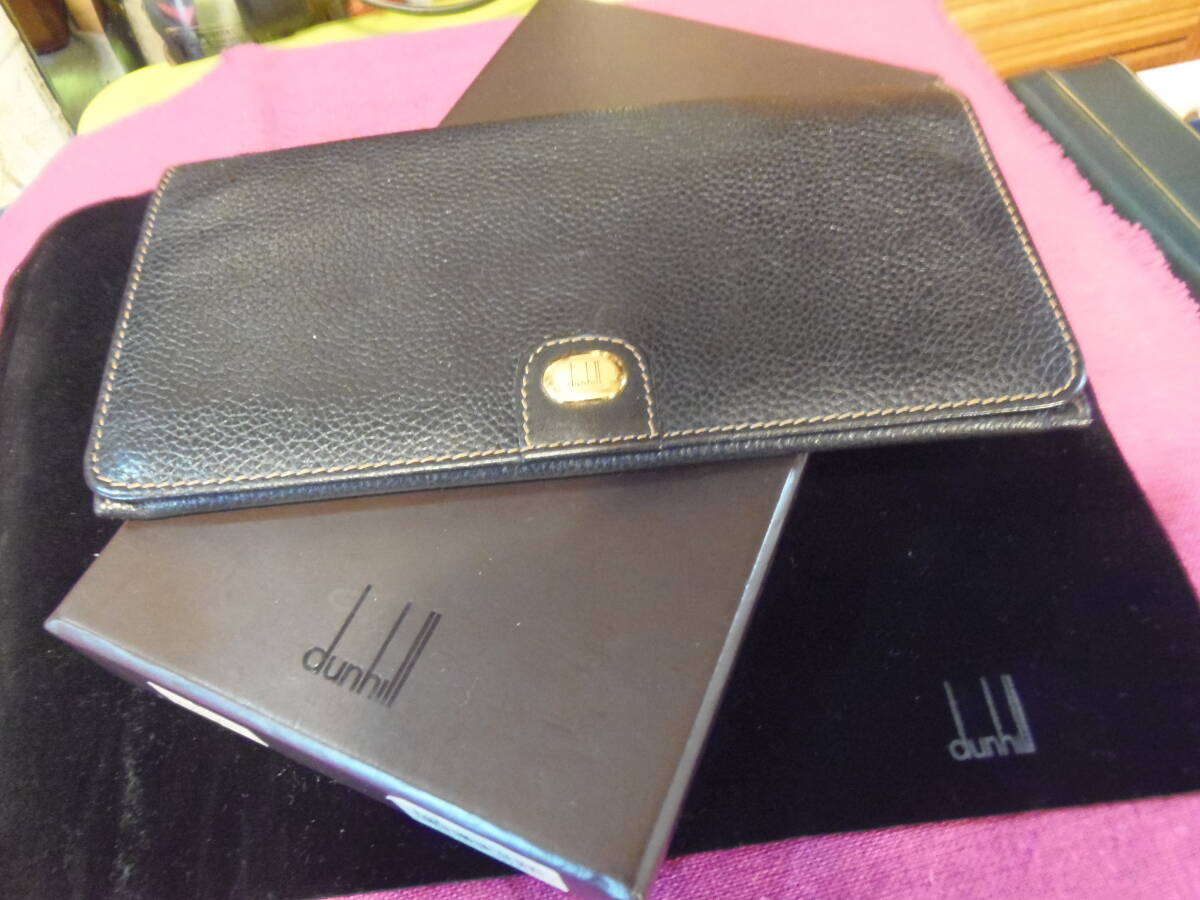 > 長財布二つ折り ダンヒル 小銭入れ カード10枚収納 レザー革 ブラック 化粧箱 クロス ギャランティカード 送料無料です。31.