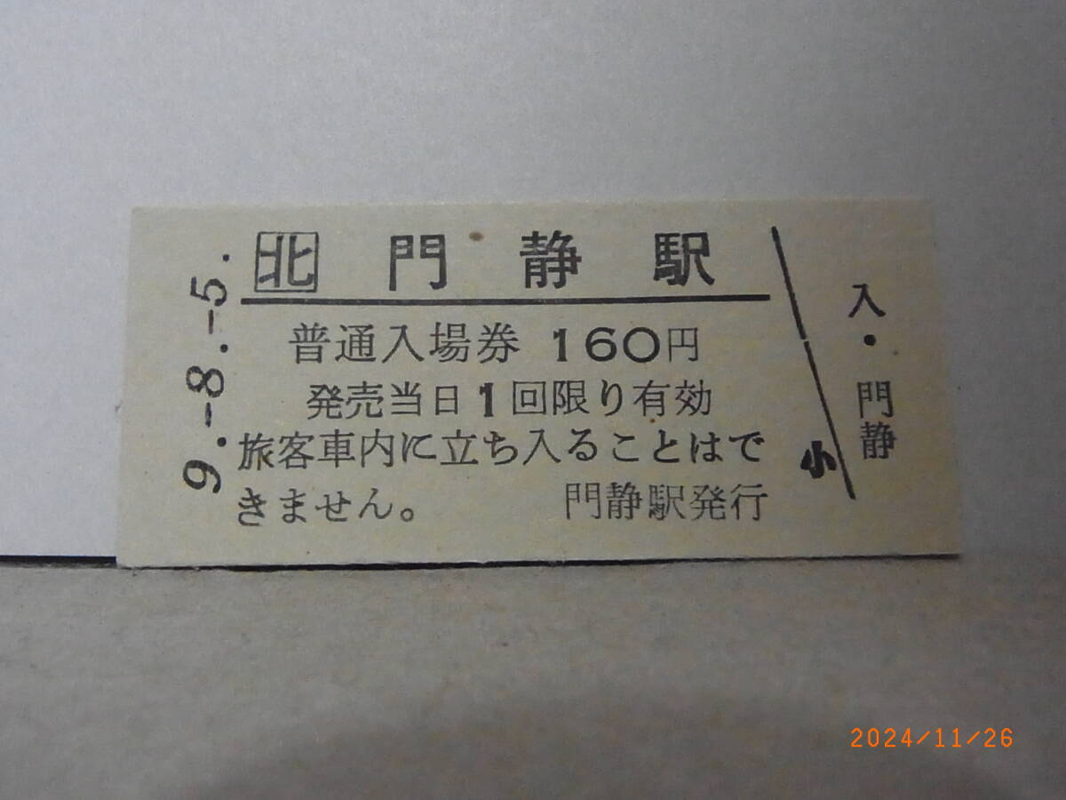 - JR北海道 根室本線 門静駅 160円普通入場券 平9.8.5 1861 ★送料無料★
