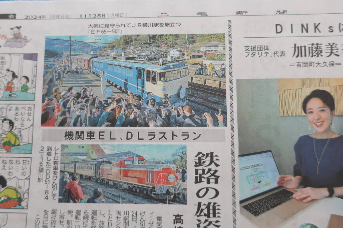 > ELぐんま DLぐんま 11月24日 1fin ファイナル運転/ラストラン/地元上毛新聞記事/EF65-501/DD51-842/信越本線/希少鉄道記念グッズ。。