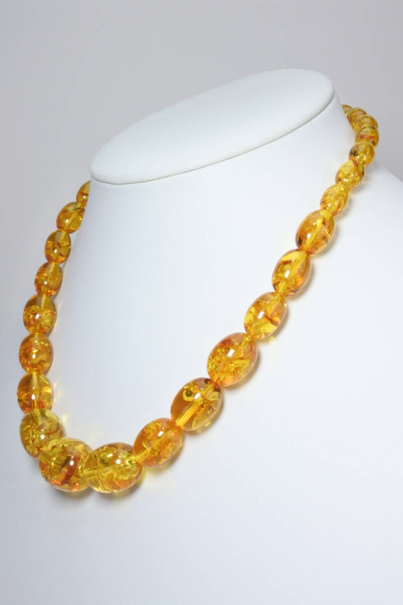 - 日本製* 天然琥珀ネックレス 長さ44㎝ 28g (最大珠 大きさ径15mm 長さ20mm )極美品