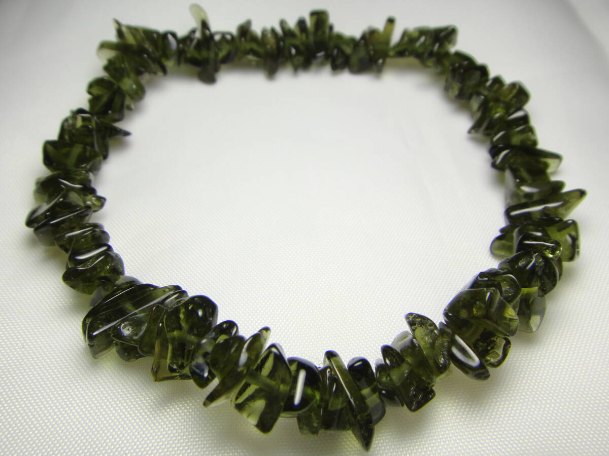 - 天然石 天然モルダバイト 天然ガラス チェコ産 さざれブレスレット 約45.55ct 1点物! ラスト! 隕石衝突 Y441