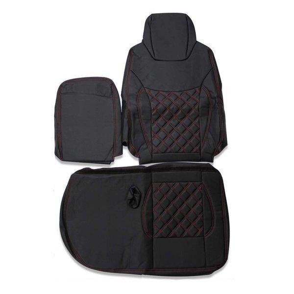 - いすゞ エルフ 6型 ワイドキャブ 1.65t~4.0t 助手席 ダイヤカット ブラックレザー レッドキルト トラックシートカバー AP-CV018L-RL