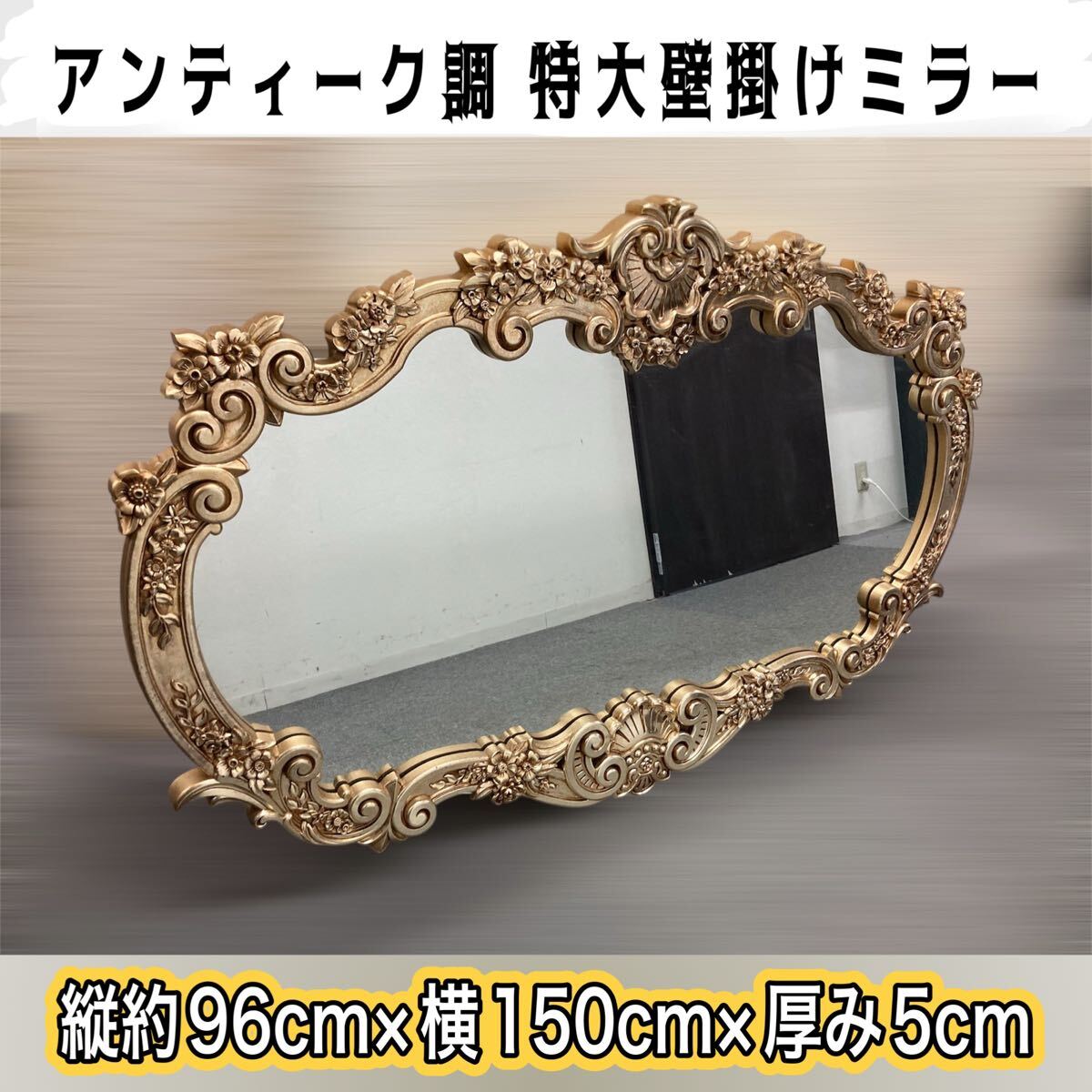- 堀②【引き取り限定/愛知県】 アンティーク調 壁掛けミラー ゴールド インテリア 壁掛け ウォールミラー ヴィンテージ ロココ調 (241127)