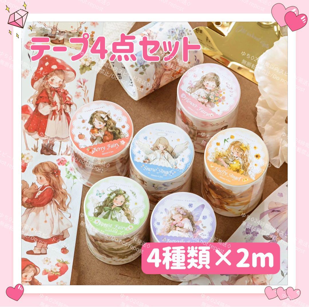- シール ロールテープ マスキングテープ 2m 4種 和紙 デコ コラージュ アレンジ 素材 コレクション 可愛い ⑤