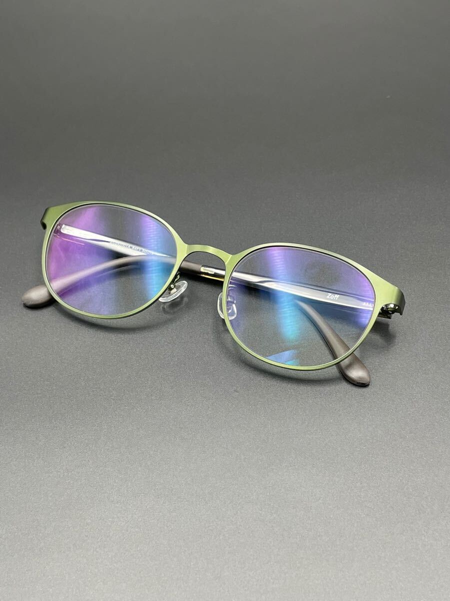 > 極美品 Zoff STANDARD SHEET METALZC242001-64F1 ゾフ ボストン型 オリーブ 眼鏡