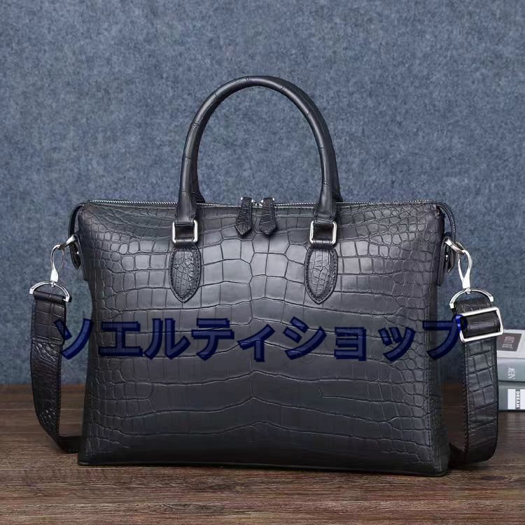 - ワニ革 腹部革センター取り ワニ革 クロコダイル本革 ブリーフケース 書類かばん ビジネスバッグ メンズ セキュリティ 防犯 A4対応