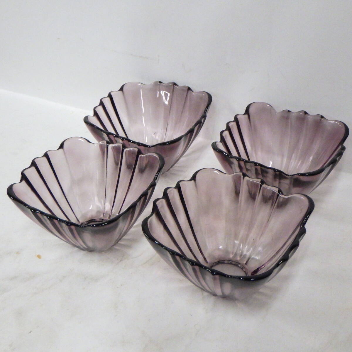 - 昭和 レトロ 紫 ガラス ポップ 小鉢 お皿 4点セット 四角 ウランガラス? ウラン? 詳細不明