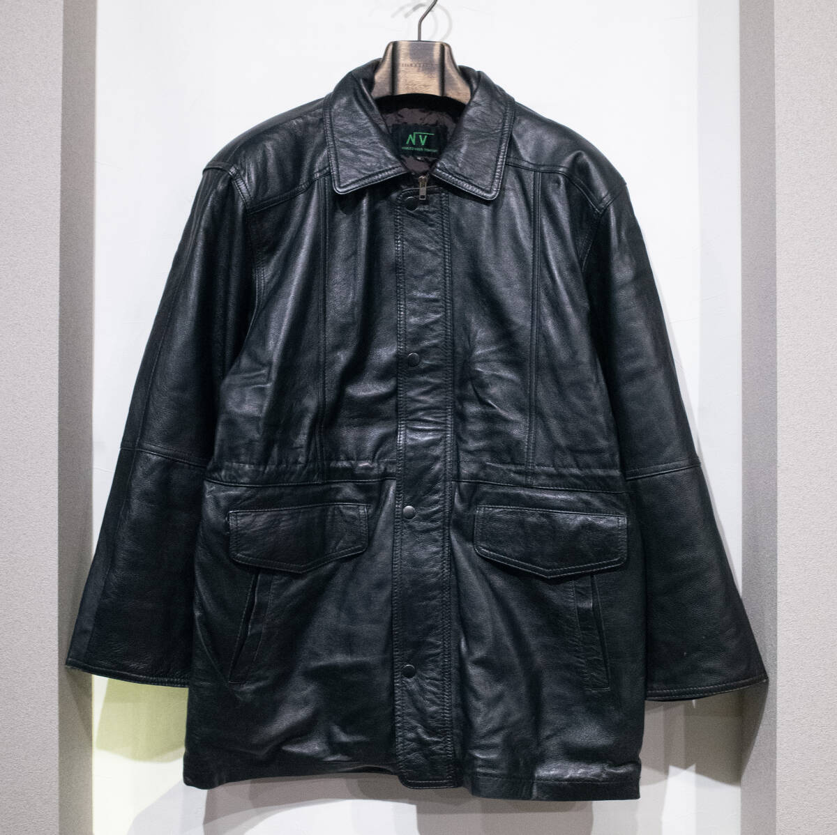 > M / 90s NV Voulez-Vousシープレザー 本革 レザージャケット ミドル丈 コート ブラック カーコート 革ジャン 黒 メンズ 古着 VINTAGE 韓国
