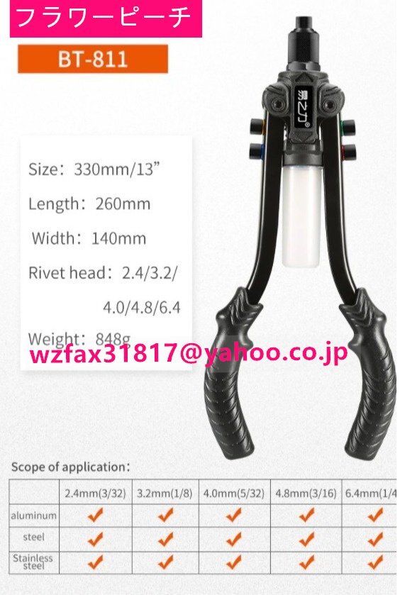 > ★☆【激安!!】新強力 リベッター リベットナット ブラインドリベット ハンドリベッター SET DIY 工具 BT-811☆★