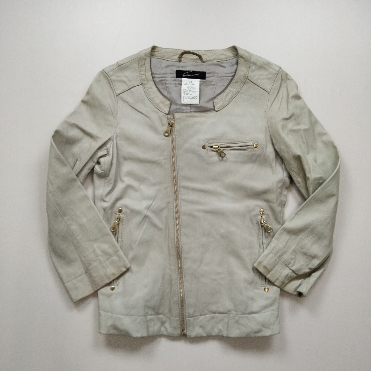 > ★ STUNNING LURE レザー バンドカラー ジャケット ベージュ サイズ36 ◆ 羊革 ジップアップ ブルゾン スタニングルアー ◆W13 LぷJI6-05