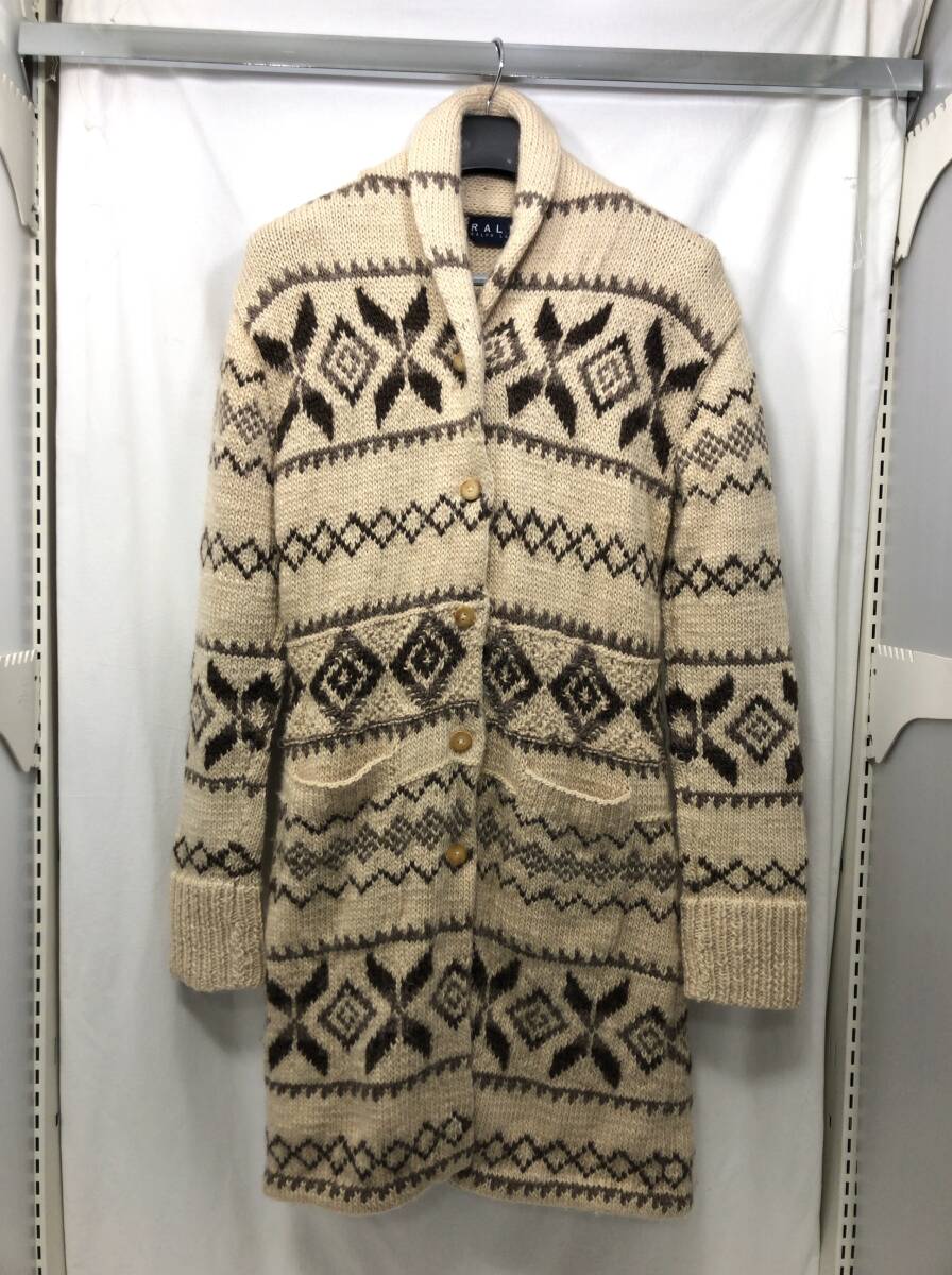 > POLO RALPH LAUREN ニット ロング カーディガン レディース M ベージュ系 ノルディック柄 ポロ ラルフローレン E9