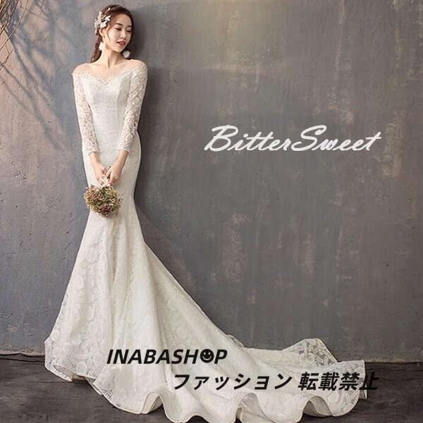 - ウェディング ドレス 長袖 ウェディングドレス ウエディングドレス マーメード マーメイドドレス 白 花嫁ドレス 二次会ドレス前撮り 結婚式