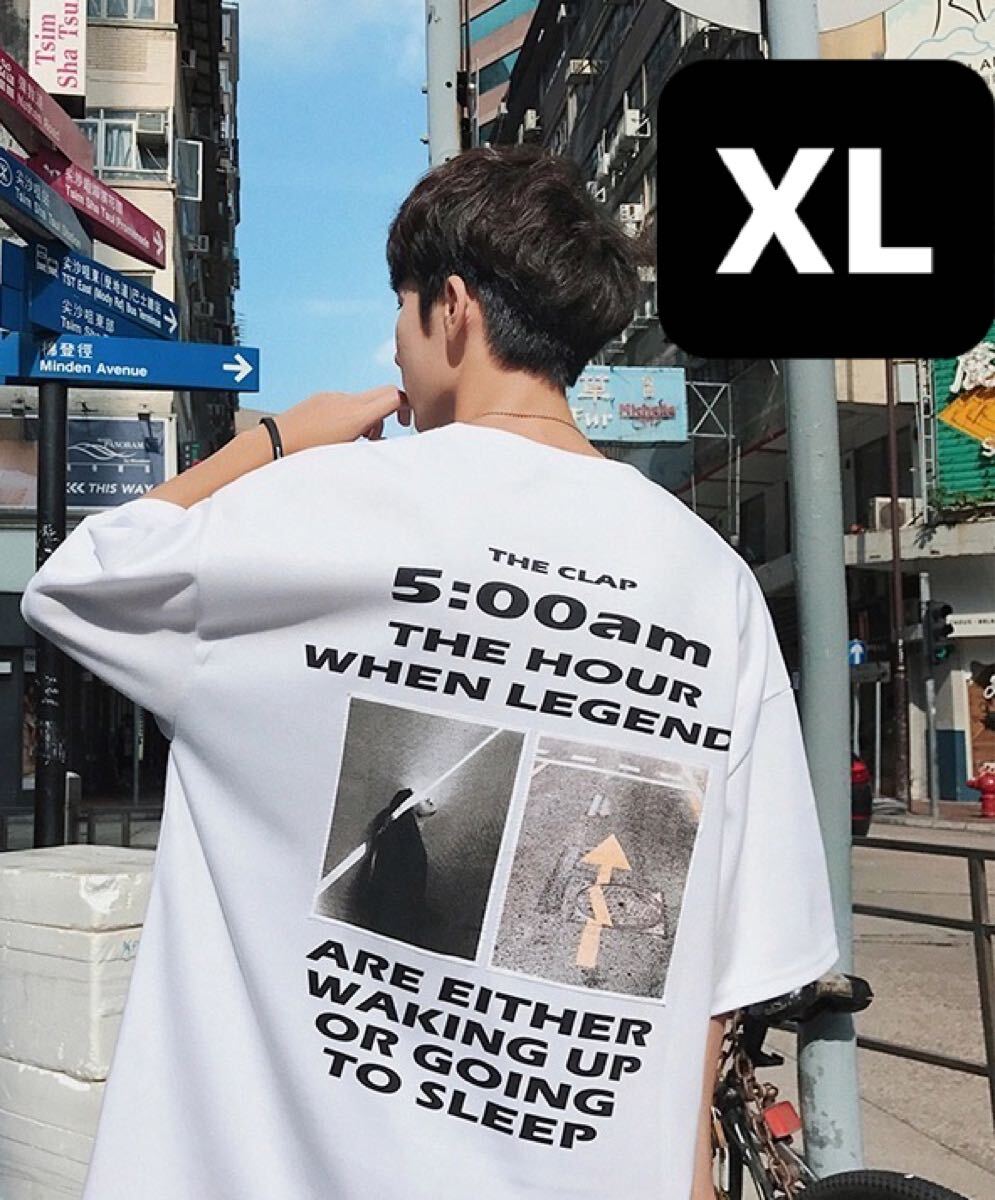 - トップス ビッグシルエット バックプリント Tシャツ シャツ トレンド ストリート 渋谷 パルコ ヒカリエ オルチャン ユニセックス 白 XL