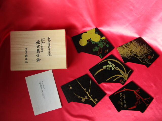 - 復刻版 東西大家作画 結文菓子盆 銘々皿 5客セット 創業百周年記念 講談社 山田平安堂 未使用品