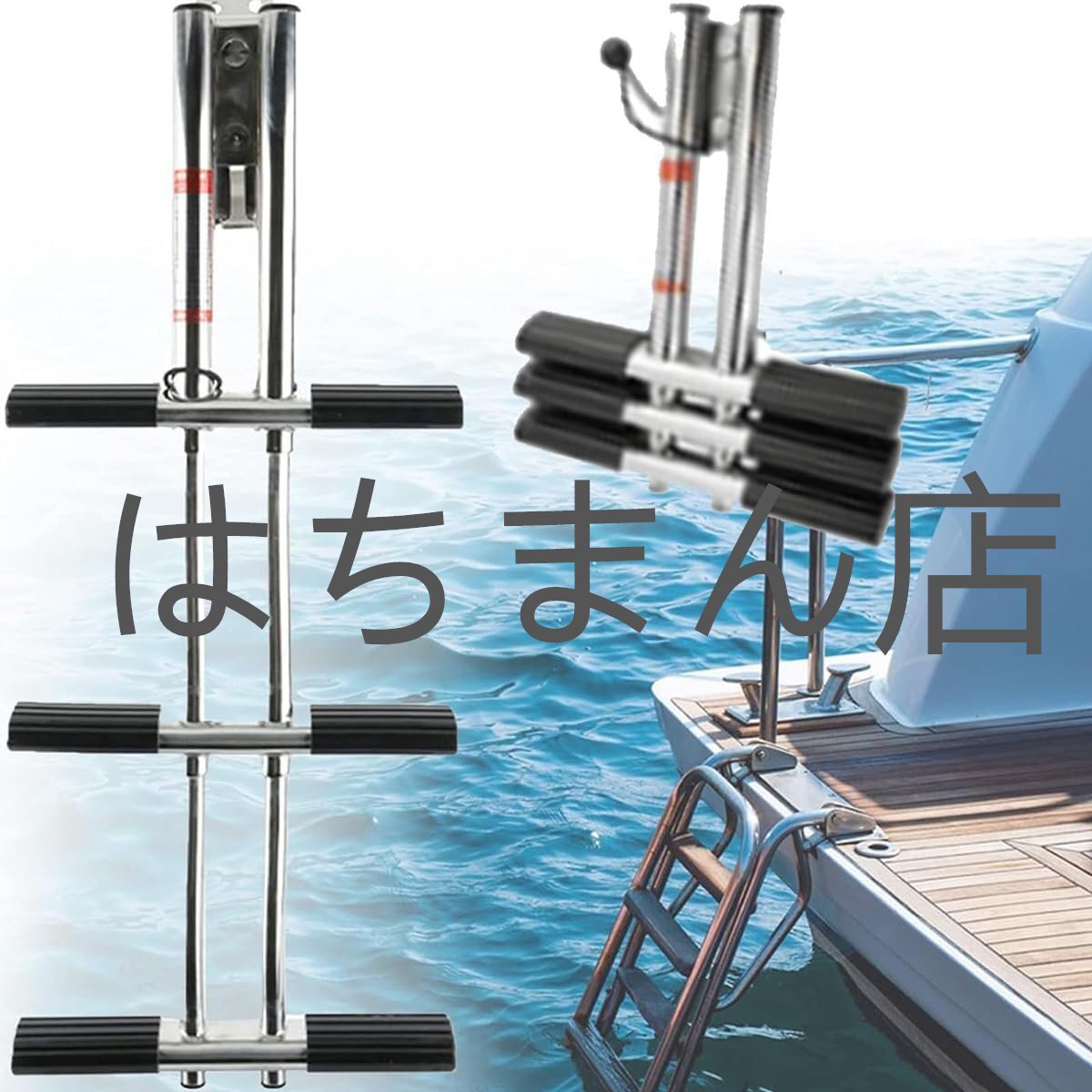 - ボートはしご 釣りボート用 3/4ステップ 折りたたみ式 取り外し可能 屋外水上ヨットはしご ステンレス鋼のポンツーンはしご 3Steps