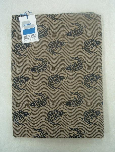 - T467-3 綿*播州織*大判風呂敷「荒磯・魚/紺・地/ベージュ」110-