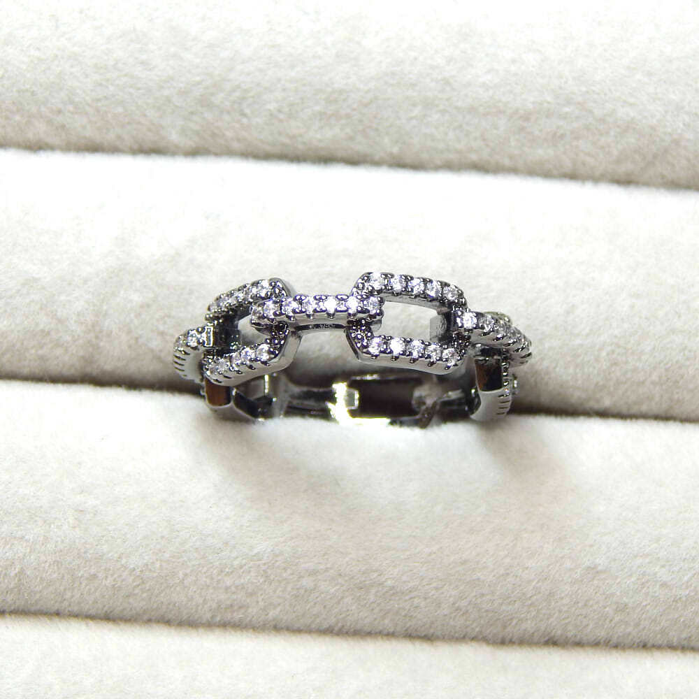 - 新品★送料無料 10号 鎖 CZダイヤモンドリング 指輪 最高級の逸品 絢爛 ブラック 厳選 レディース メンズ アクセサリー 限定 ジルコニア