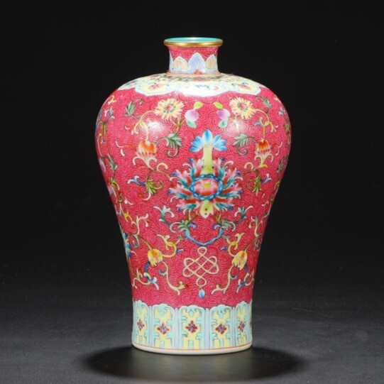 - 「大清乾隆年製」銘 粉彩花卉梅瓶 唐物 箱付き 陶磁器 中国美術 古美術 置物 RG395