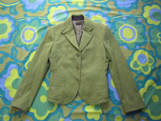 > Paul Smith BLACK ポールスミス ブラック ウールジャケット グリーン系 レディース40 USED 表地/ウール100 裏地/キュプラ