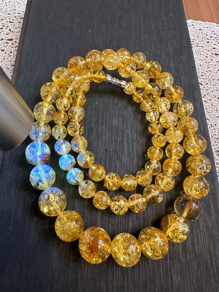 - V-971 天然 本物 琥珀 アンバー 金花珀 ネックレス 天然保証