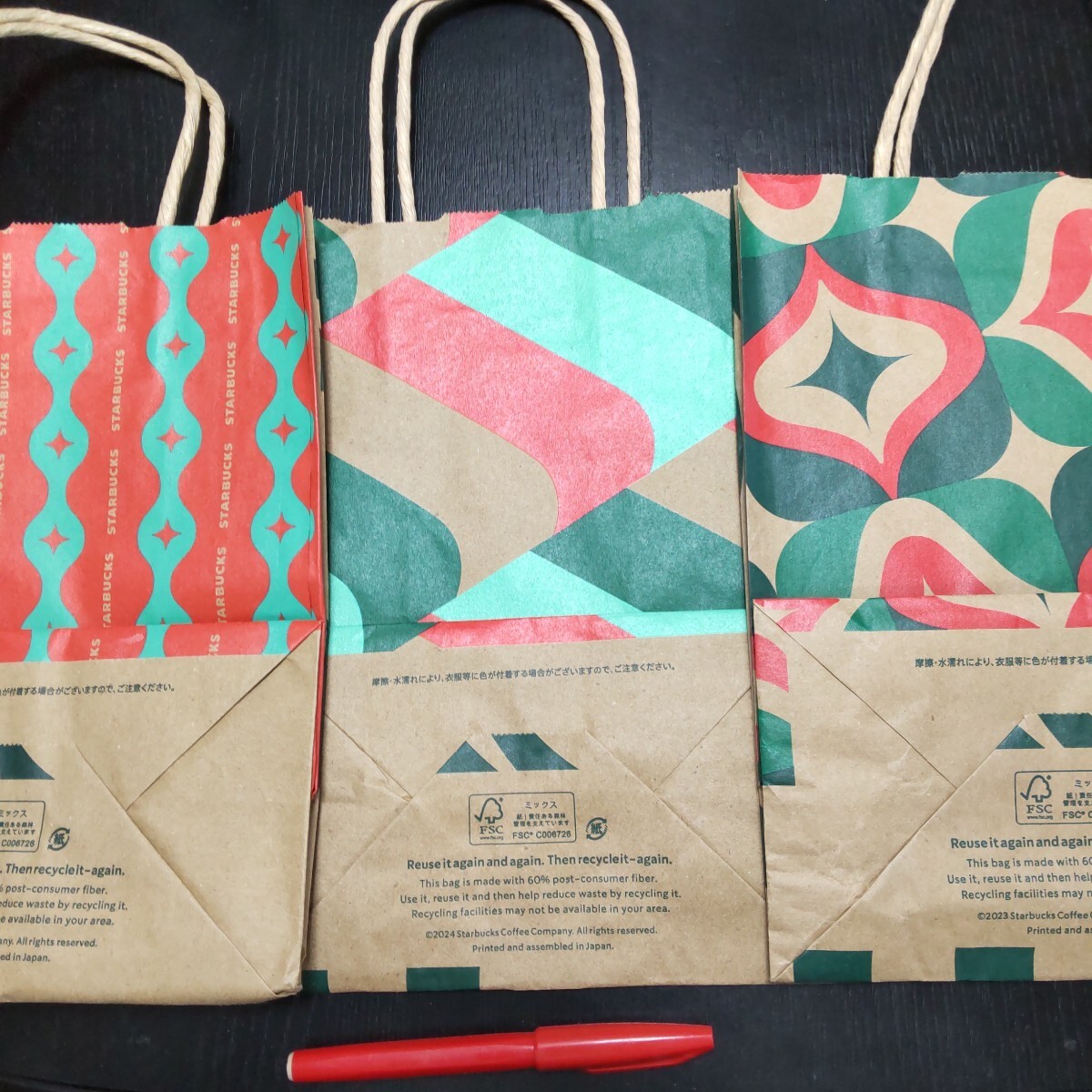 - 2411 スタバ スターバックス クリスマス ショッパーズ 紙袋 小3柄