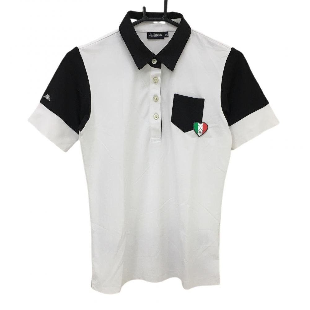 - 【超美品】カッパ 半袖ポロシャツ 白×黒 胸ポケット ハートワッペン レディース M ゴルフウェア Kappa