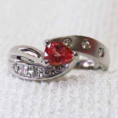 > 【値下げ交渉は質問欄より】パパラチアカラーのサファイア(ダイヤ)プラチナ900製デザイン指輪美品リング#11,5号