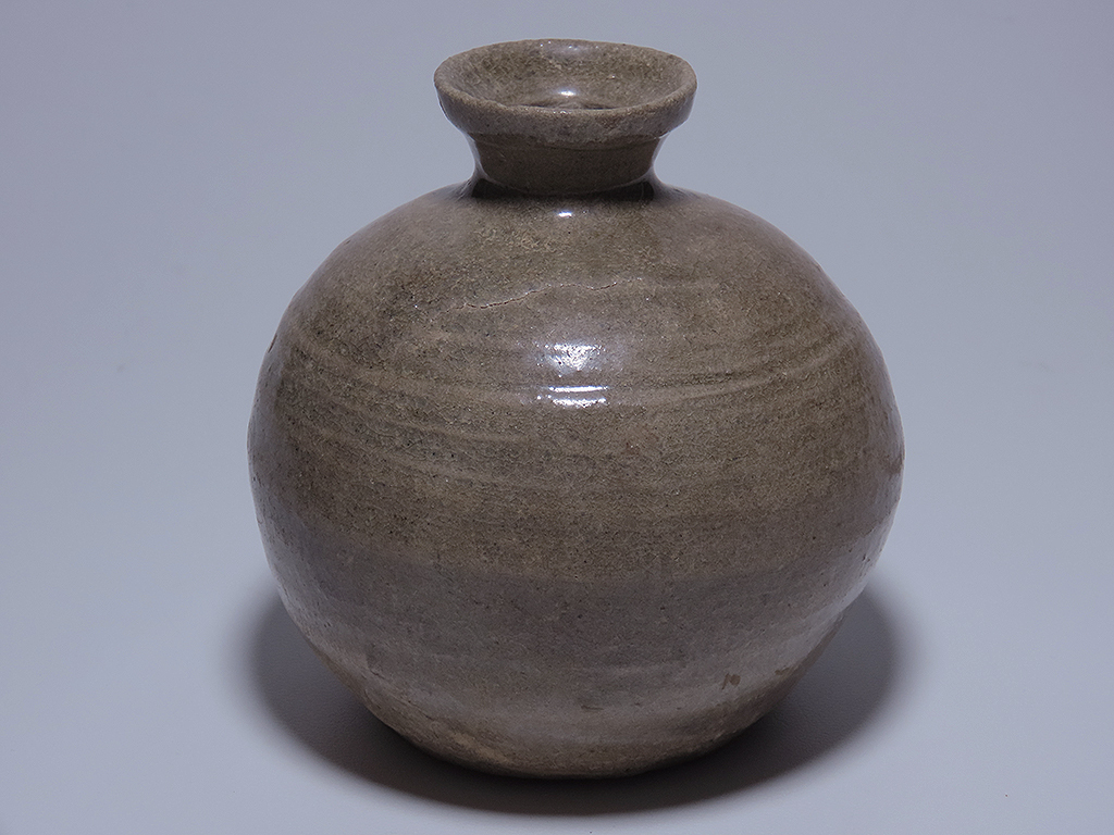 - 高麗青磁の花瓶.油壷.発掘品?.歪みや窯傷や少しの小傷あります.箱あります。