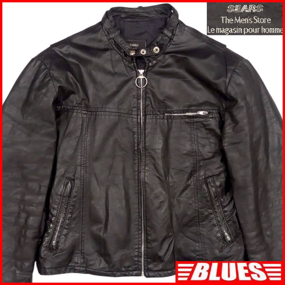 > 即決★SEARS★メンズ L レザーライダースジャケット シアーズ 44 黒 サイドジッパー キルティング 本革 シングル ライディング ツーリング
