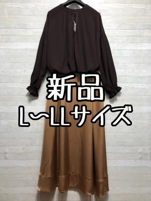 - 新品☆L~LL♪高級感のあるサテンのロングスカート&ブラウス〇A820
