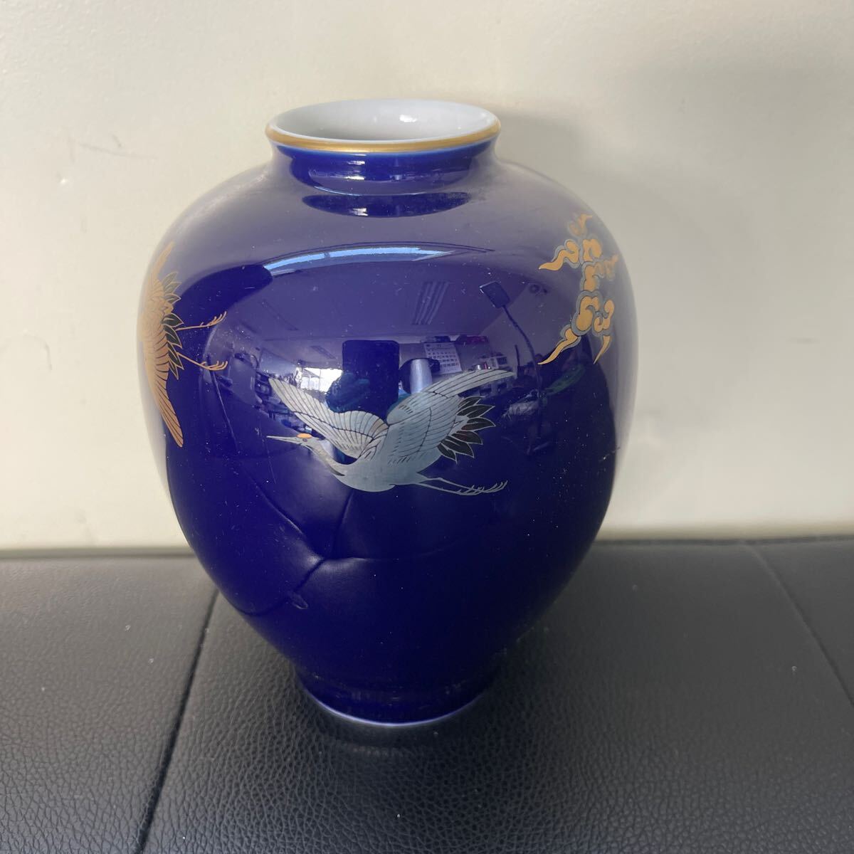 - 深川製磁 花瓶 花器 壺 花入 金彩 鶴