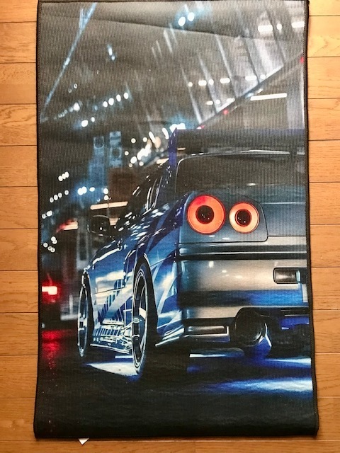 > かっこいい?スカイライン GT-R R34 ワイスピ ポールウオーカー仕様 大盤 部屋マット・デスク下マット・玄関マット