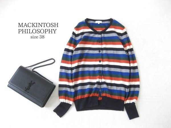 > 送料込☆MACKINTOSH PHILOSOPHY☆カーディガン☆長袖☆ボーダー柄☆38(M)☆ウール素材☆イタリア生地☆マッキントッシュ☆美品☆
