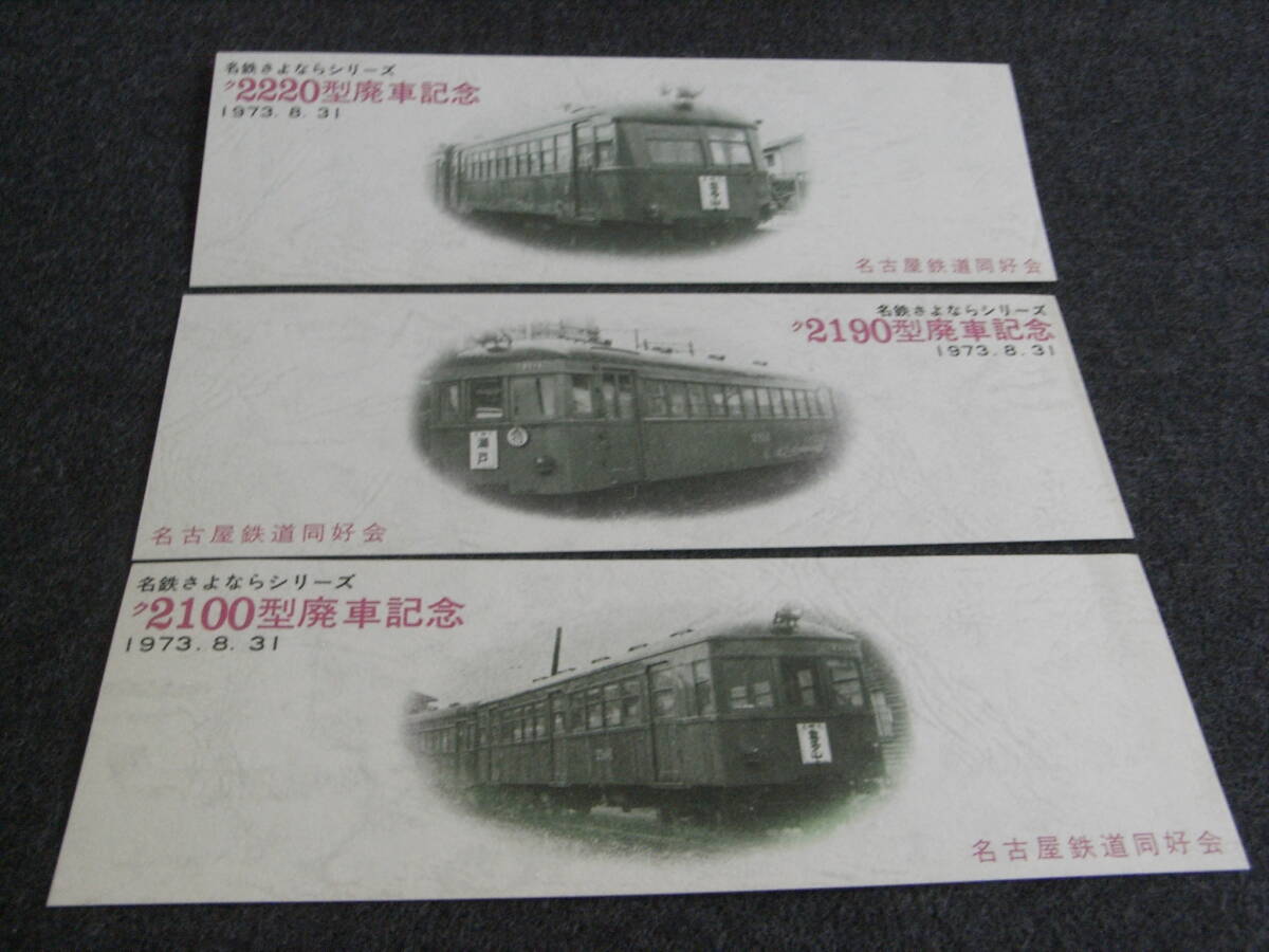 - 3枚 名鉄さよならシリーズ 1973年8月31日 ク2100型廃車記念 ク2190型廃車記念 ク2220型廃車記念 名古屋鉄道同好会 3枚