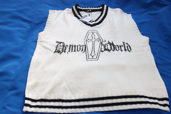 - アクリル ロゴ ニット ベスト 白 レディース L 新品 未使用